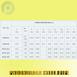 - Tiêu chuẩn: ASTM A106 (tương đương ASME SA106), Grade B (Gr.B).